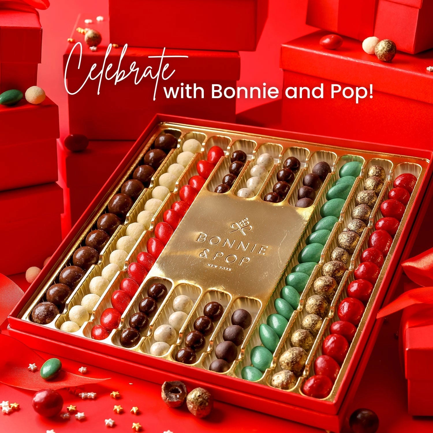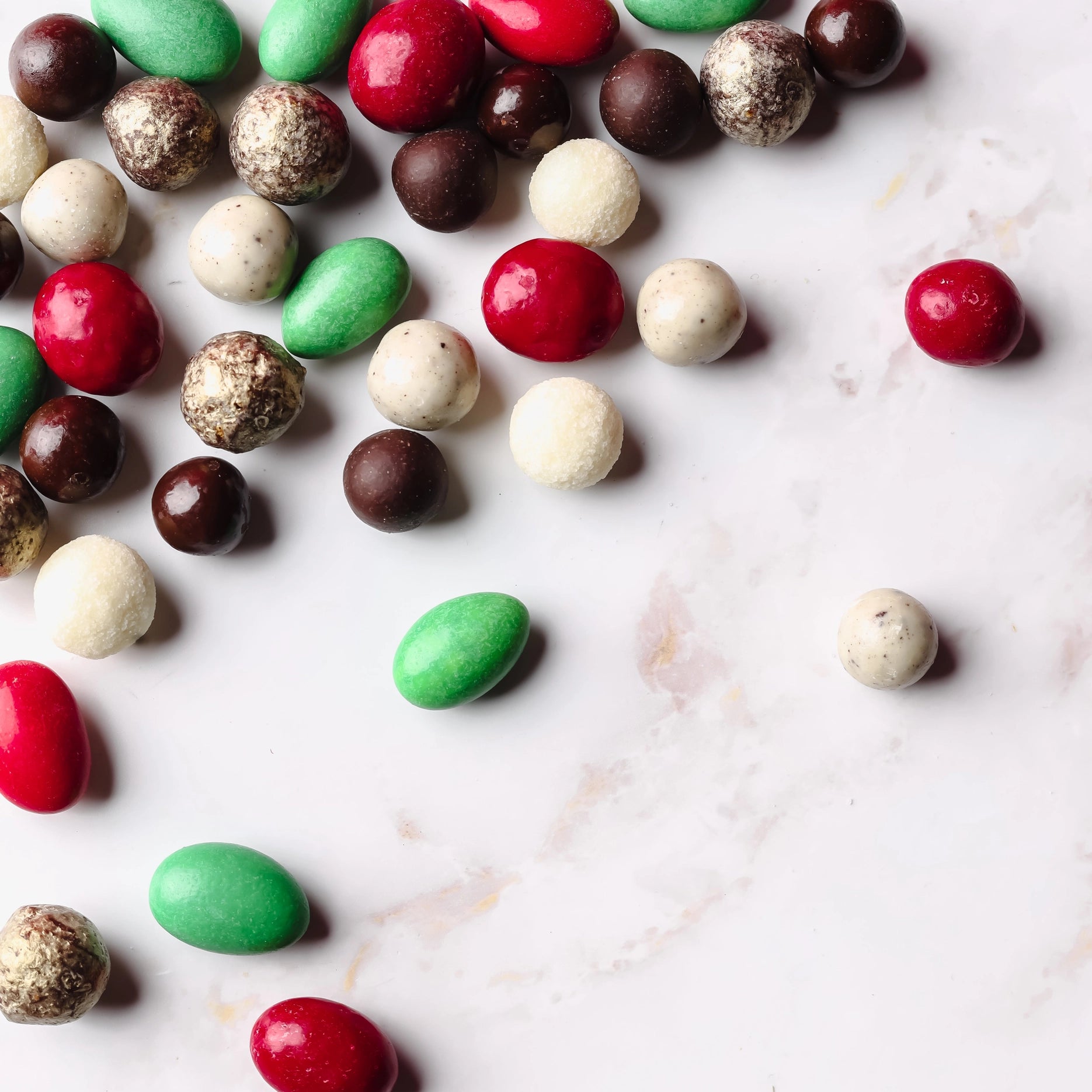 Peanut Butter Caramels, Milk Chocolate Velvet Red Cherries, Sparkling Prosecco Cordials, Sugar Cookie, Red Apple Caramel, Milk Chocolate Malt Balls, Yogurt Malt Balls, Pumpkin Spice Caramel, Hot Cocoa Almonds, Cookies & Cream Caramels.